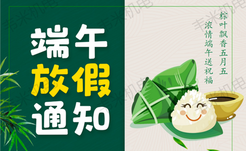 --------------------------------2021年“端午節”放假通知---------------------------------端午節將至,根據國家法定假期的規定,并結合公司實際情況,現將“端午節”放假...