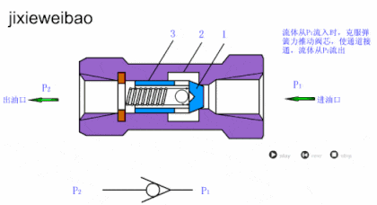 2、作用:只允許液流一個方向流動,反向則被截止。